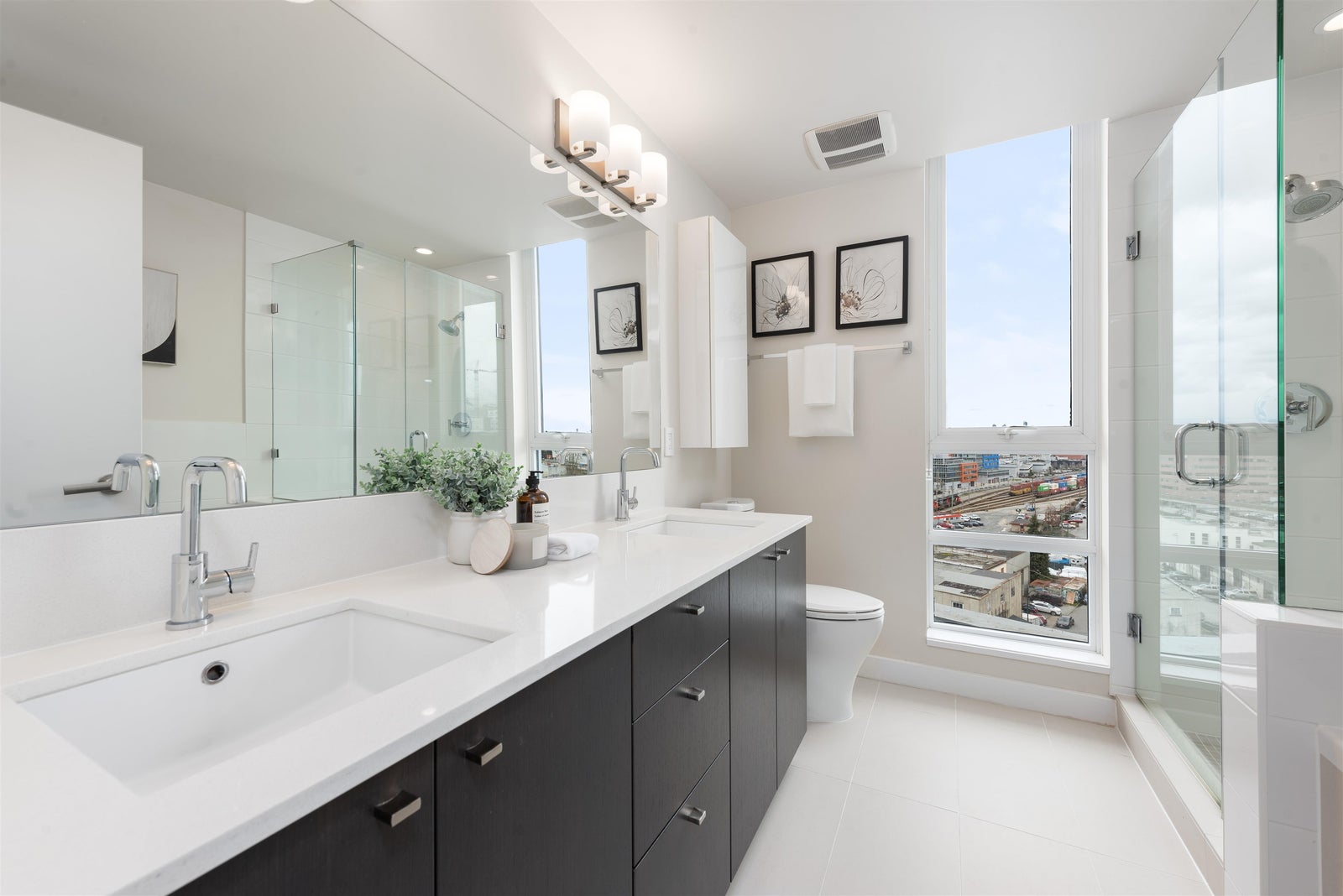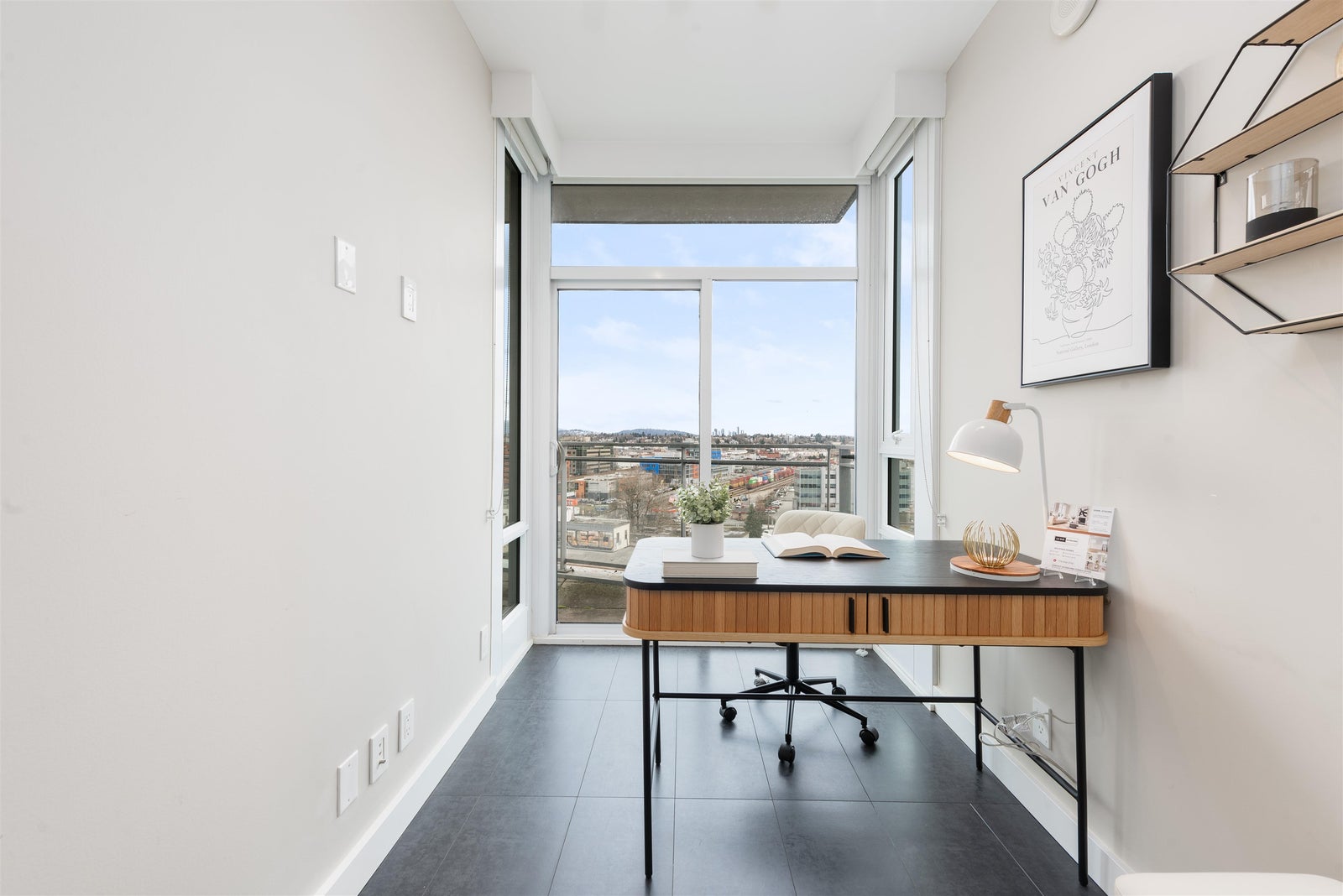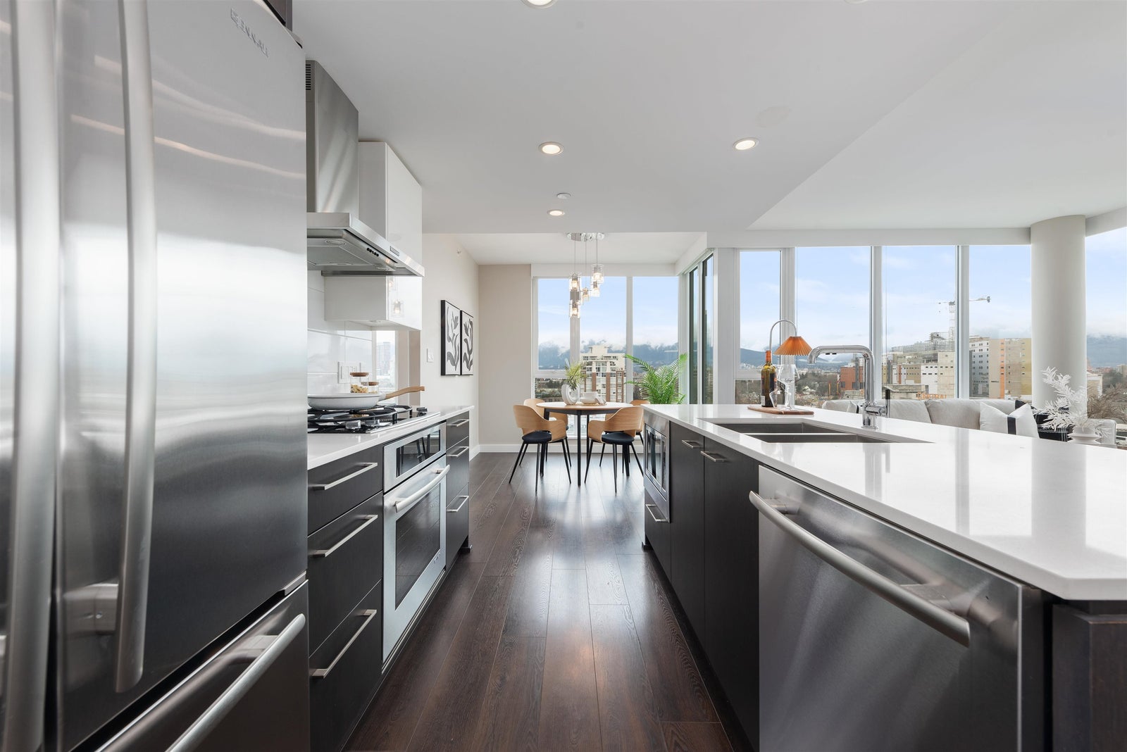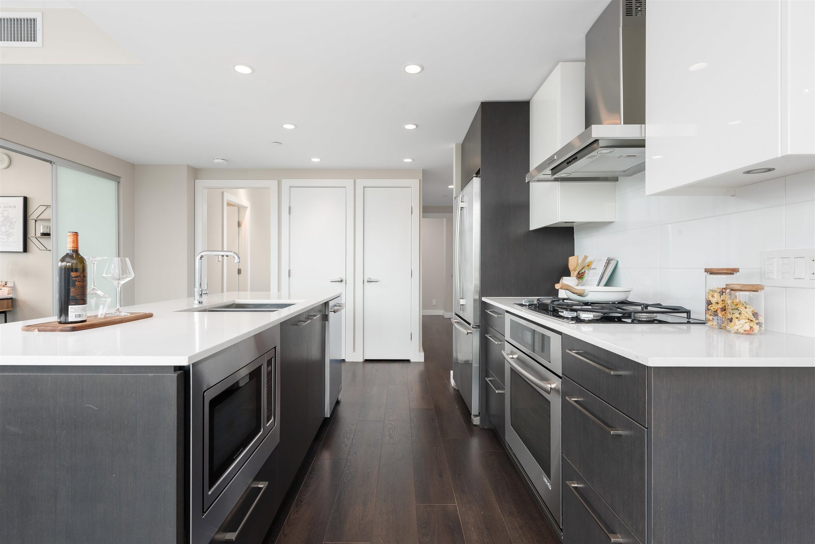 Welcome to Central by Onni! This rare corner unit features 2 beds, 2 baths, a flex room, a den, and balcony offering versatility and space. This bright northeast-facing home showcases stunning city and mountain views and includes central AC and heating for year-round comfort. The modern kitchen boasts integrated stainless-steel appliances and sleek quartz counters. Enjoy luxury amenities like a full-time concierge, rooftop dining terrace with a garden, full-size gym, party room, and theatre. Steps to the seawall, Skytrain, and Olympic Village. Includes 2 side-by-side parking spots and a storage locker. Don’t miss this exceptional opportunity to own in one of Vancouver’s most sought-after neighbourhoods!